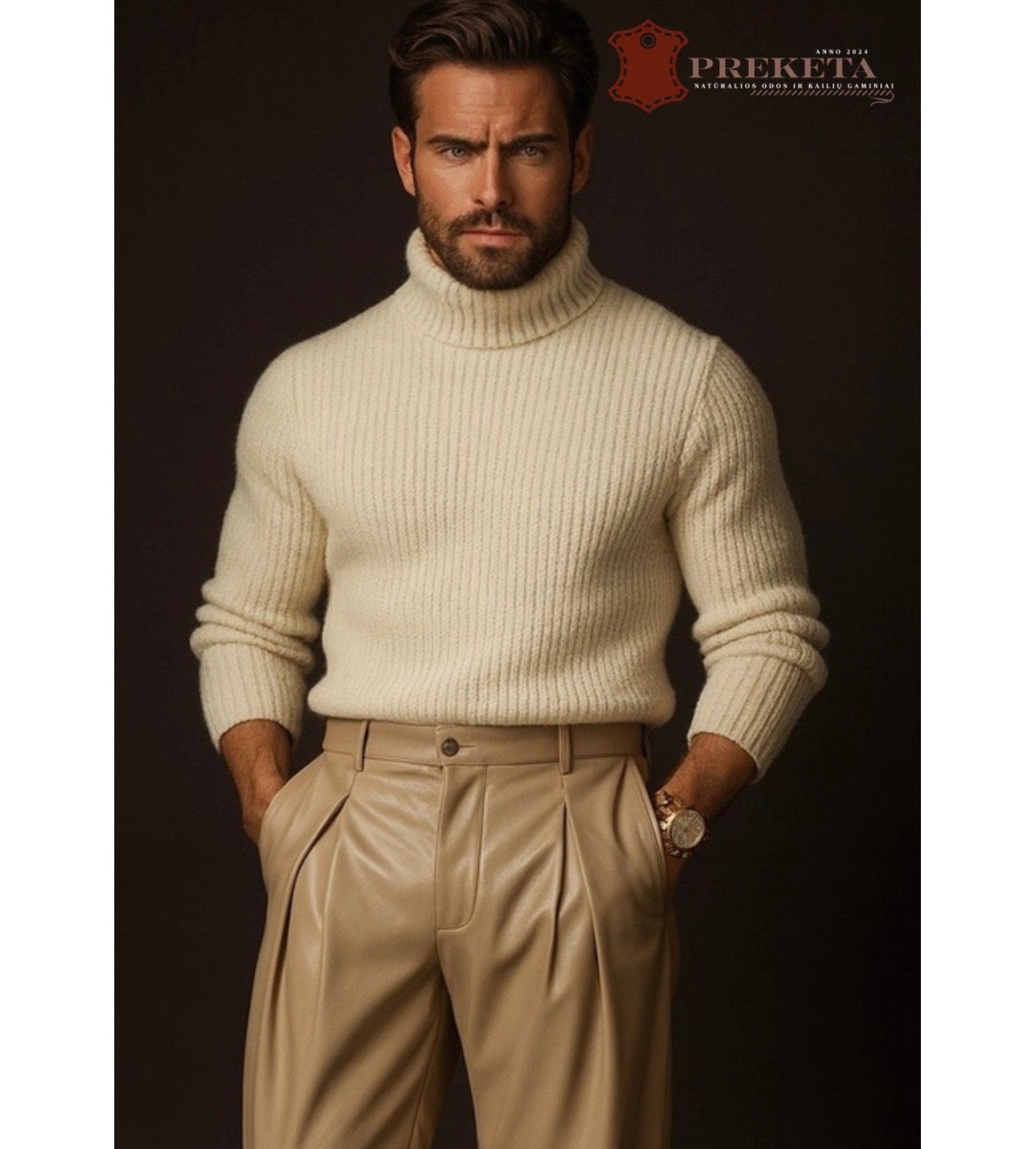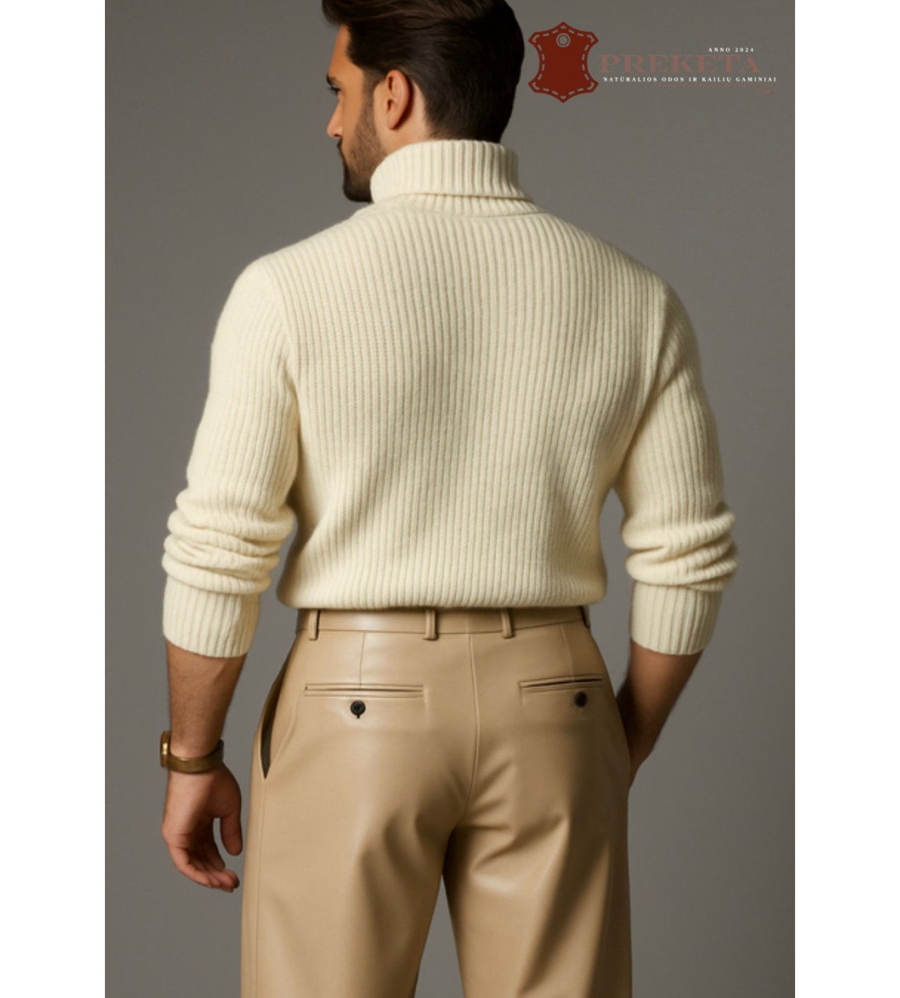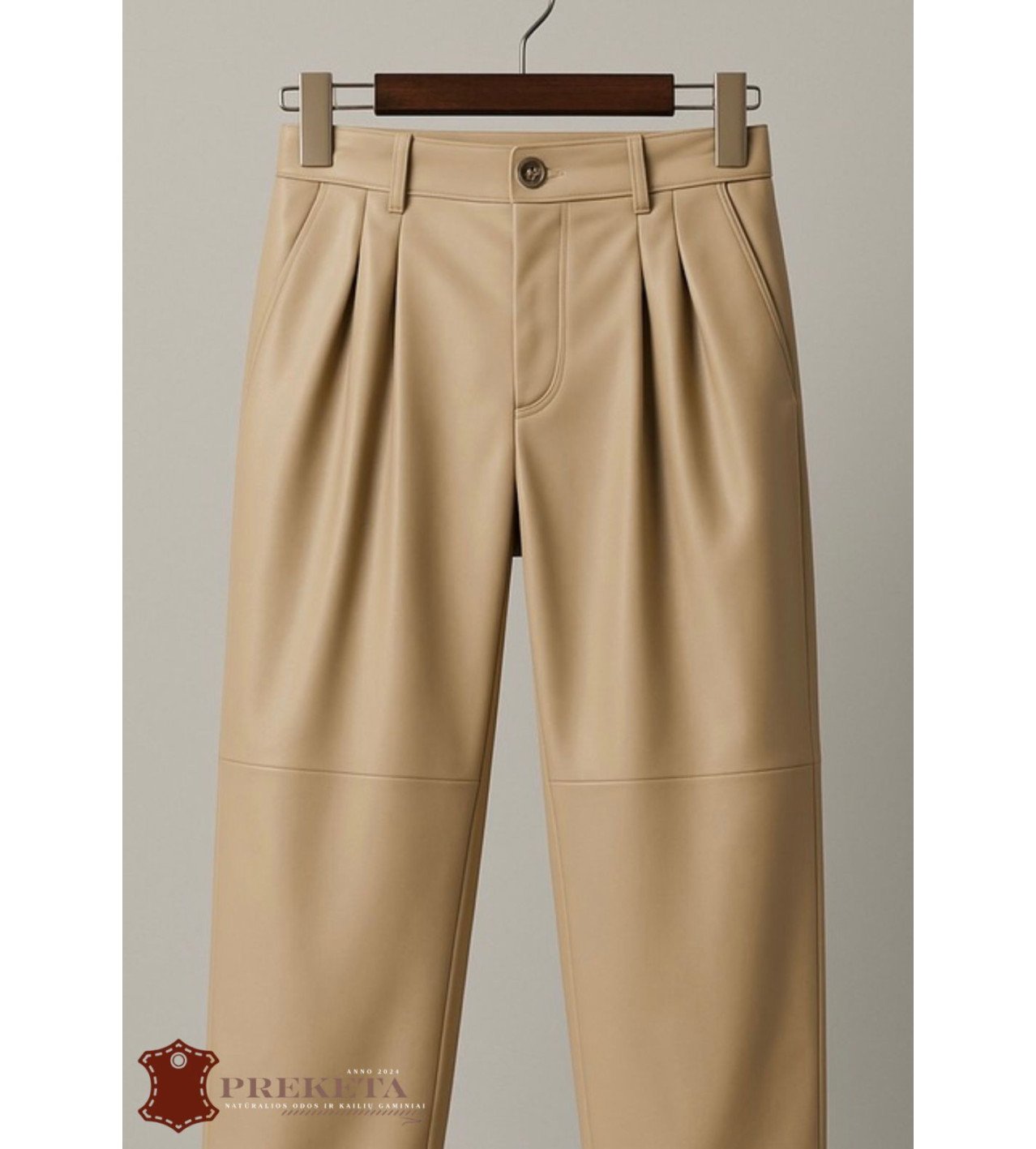 Išpardavimas! Išparduota −30% Norų sąrašas Palyginti Greita peržiūra Dydis XS, S, M, L, XL Aukštos kokybės, juodos, natūralios odos vyriškos kelnės su aukštu V formos liemeniu 349,99 € −30% 244,99 € Išparduota Aukštas „V“ formos juosmuo, platus ir laisvas siluetas, elegantiškos klostės, minimalistinis priekis be matomo užsegimo. Lengvai derinamos tiek...
