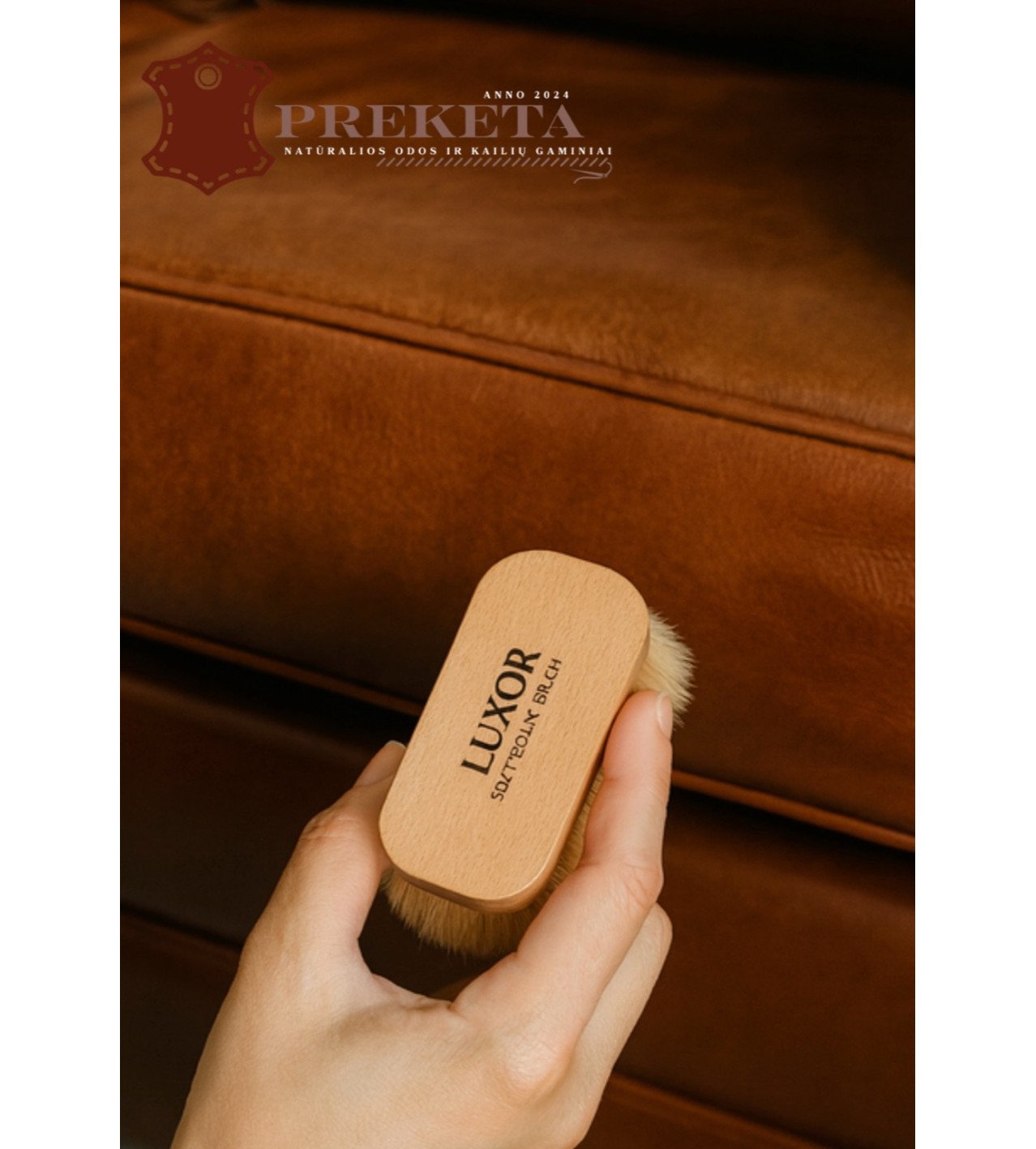 LUXOR šepetėlis sukurtas iš buko medienos ir 100 % natūralių šerno šerelių, kurie užtikrina švelnų, odos paviršiaus nebraižantį valymą. Tai profesionalus įrankis, skirtas tiek sausam valymui, tiek odos balzamų, kremų ir impregnanto paskirstymui.